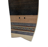 Su exclusivo diseño compuesto de una piedra natural de pizarra en tonalidades malva que combinados con las maderas exóticas de cebrano, buscan simular los dibujos de las formaciones rocosas.